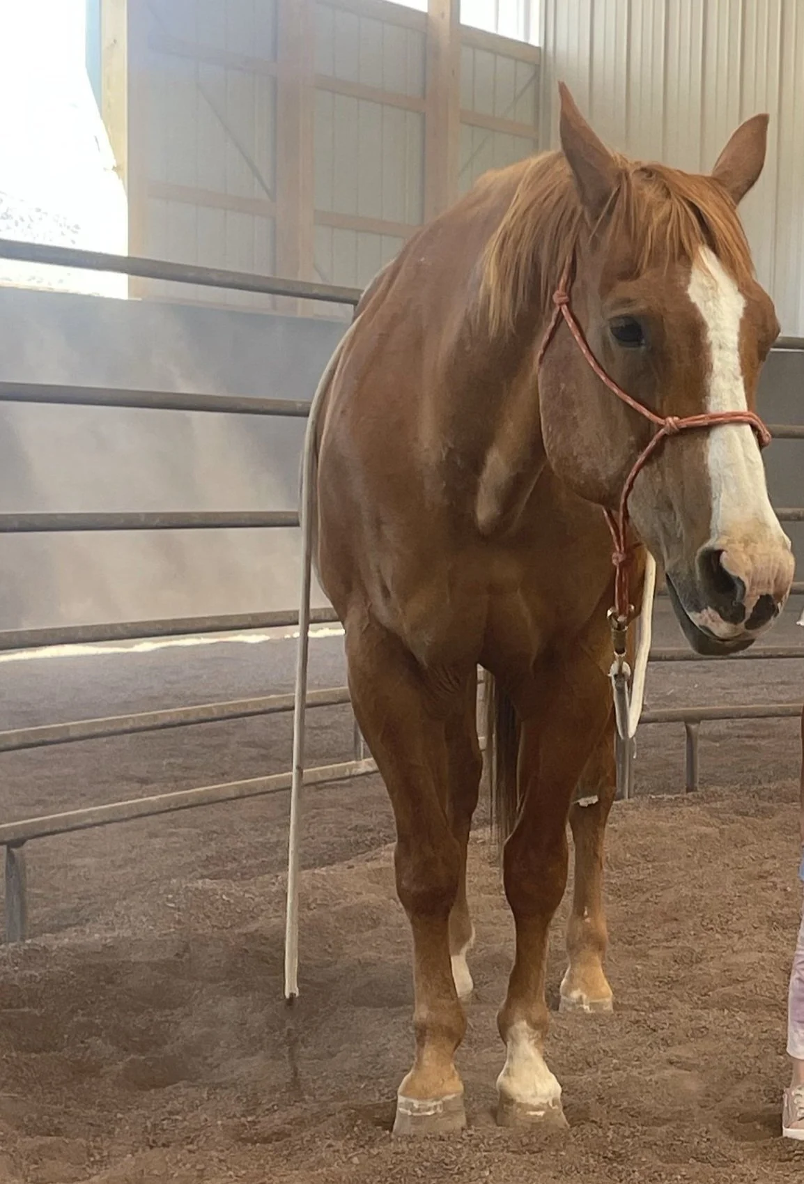 Al came to MVHR at the end of 2021 after a life as a hard working ranch horse. After the first few rides with Al, he came up lame and showed navicular changes, most likely the reason he became unwanted. We were able to keep him comfortable with special shoes, but this winter he presented a more severe lameness. This sweet boy received several treatments this past year to help him be more comfortable. Unfortunately Al had continued discomfort and presented most recently with a new lameness that we believe was a torn deep digital flexor tendon, something we could not repair.